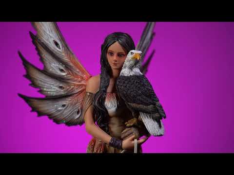 - Figur einer Fee mit Traumfänger und Adlerbegleiter
