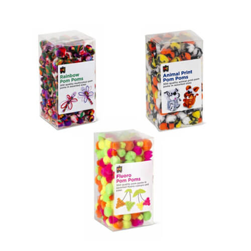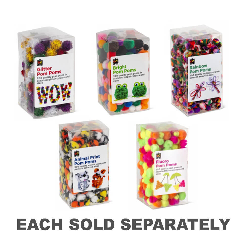 Pom Poms eignen sich hervorragend für viele Bastelarbeiten, zum Basteln von Weihnachtsstrümpfen oder einfach zum Spielen damit. Diese glitzernden und flauschigen Pompons verleihen jeder Bastelaktivität einen 3D-Effekt. Verschiedene Glitzerfarben und -größen in einer 200er-Box.