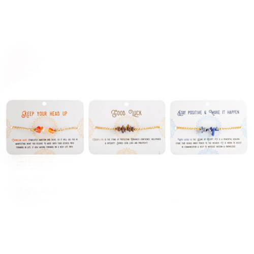 - 6 Verschiedene Farben und Steine: Türkis, Turmalin, Quarz, Karneol, Tigerauge, Lapislazuli.