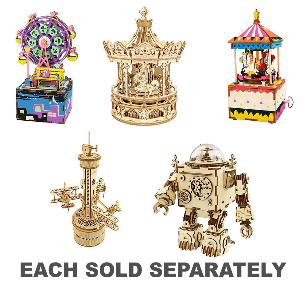 Eine perfekte Kombination aus romantischem Karussell und coolem 3D-Holzpuzzle in einer Spieluhr. Bauen Sie es mit Ihren Händen und lassen Sie sich von der wunderschönen Musik und der verträumten Atmosphäre umgeben!