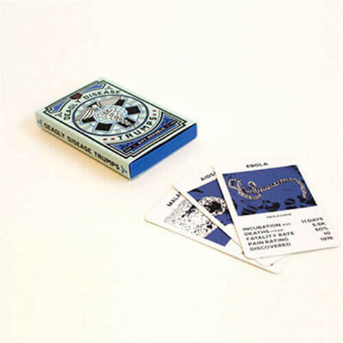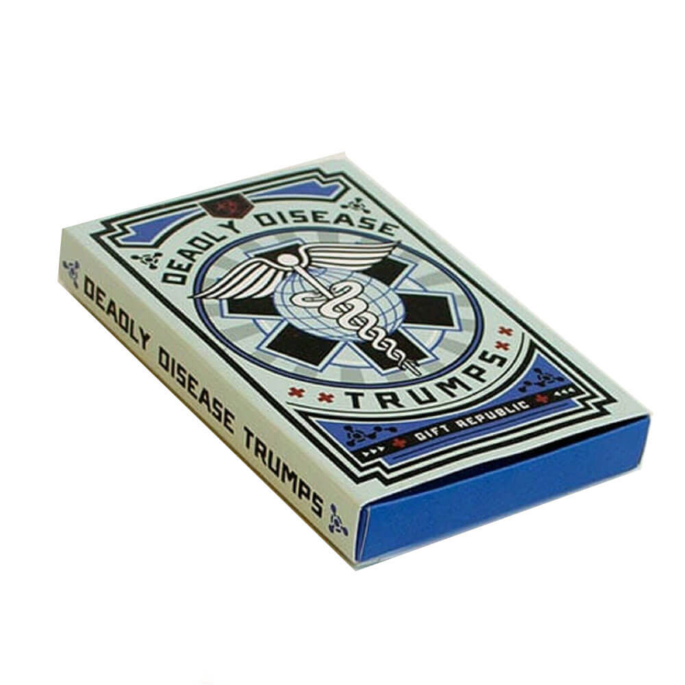 Gibt es etwas Besseres an einem Menschen als schwarzen Humor? Wir bei Gift Republic denken nicht. Vor diesem Hintergrund haben wir das klassische Kinderspiel mit einem etwas erwachseneren Touch nachgebildet. Perfekt zum Spielen auf langen Busfahrten oder in dunklen Kellern – unsere neue Reihe von Top Trumps sorgt für stundenlangen, morbiden Spielspaß.
