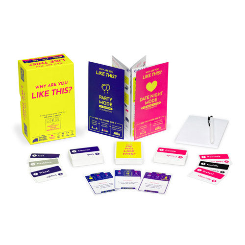 Målet er at få dit team til at gætte så mange hemmelige ord som muligt, før timeren løber ud. For at gøre dette kan du enten tale, tegne eller gestus. Men der er en fangst! Hvert kort leveres også med en ekstra vri for at gøre dit job lidt hårdere-og mere latterligt underholdende. Dette spil får alle ud af deres komfortzoner og i en fjollet stemning. Det er perfekt til fester, teambuilding -begivenheder og rullende spilaftener.