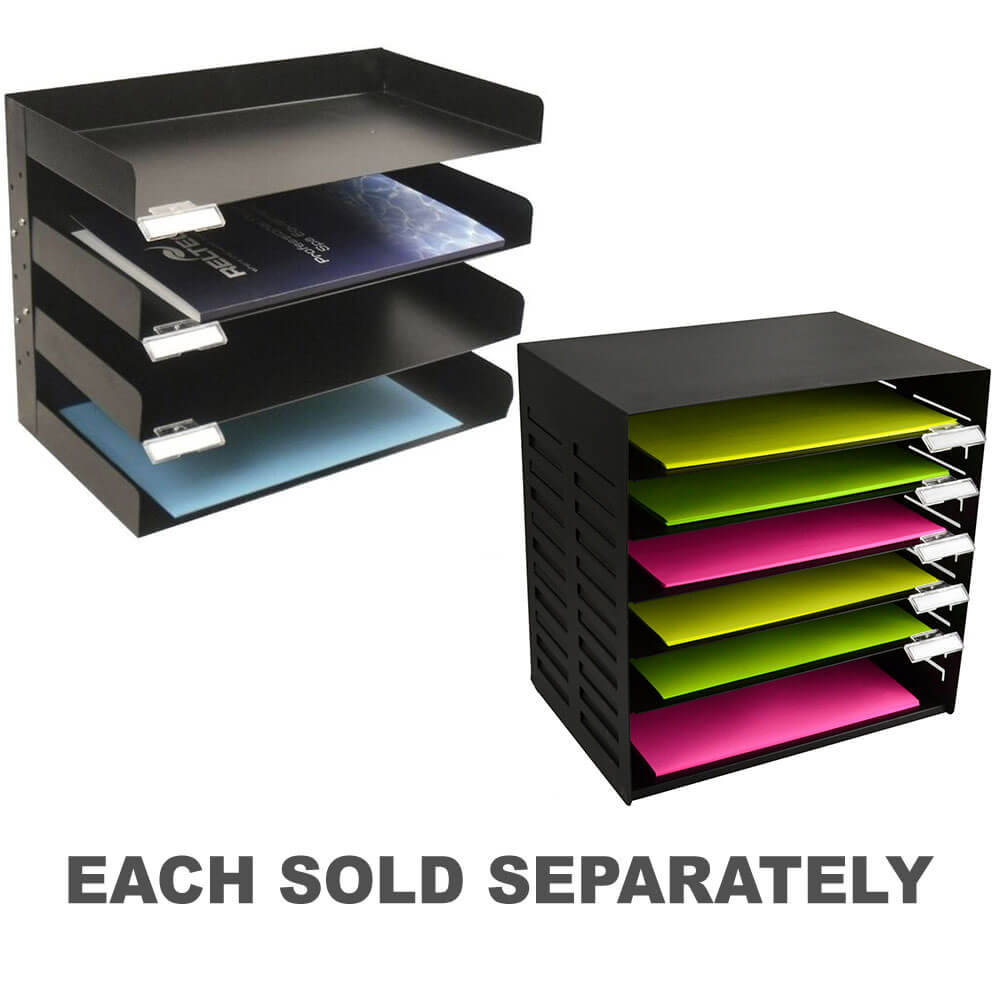 Dette italplast Metal 6 Tier Stationery Rack er et fantastisk sted at gemme dine filer og dokumenter med op til narrescapstørrelse. Dette rack har gummifødder, så det ikke ridser overflader eller glider rundt. Denne bakke leveres også med identifikationsfaner, så du kan mærke og organisere dit arkiveringssystem på din egen unikke måde.