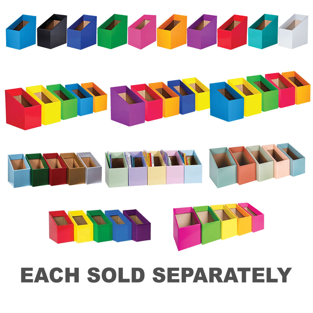 Keep your classroom organised and clutter-free with these sturdy classroom Book Boxes, designed for storing books, papers, and educational materials. Their generous size makes them perfect for classroom libraries, student work storage, or subject-specific organisation. These boxes help create a visually structured learning environment while ensuring books and resources remain easily accessible. Sold in packs of 5, these durable boxes provide a practical and space-efficient solution for teachers and students alike. Pair them with our Self-Adhesive Label Pockets for quick and clear identification of contents.