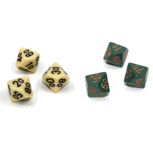 Opaque Polyhedral Ivory/black Tens 10 ~ Multiple loose dice are pictured to show all sides and possible color variations. Item Code is for individual dice.