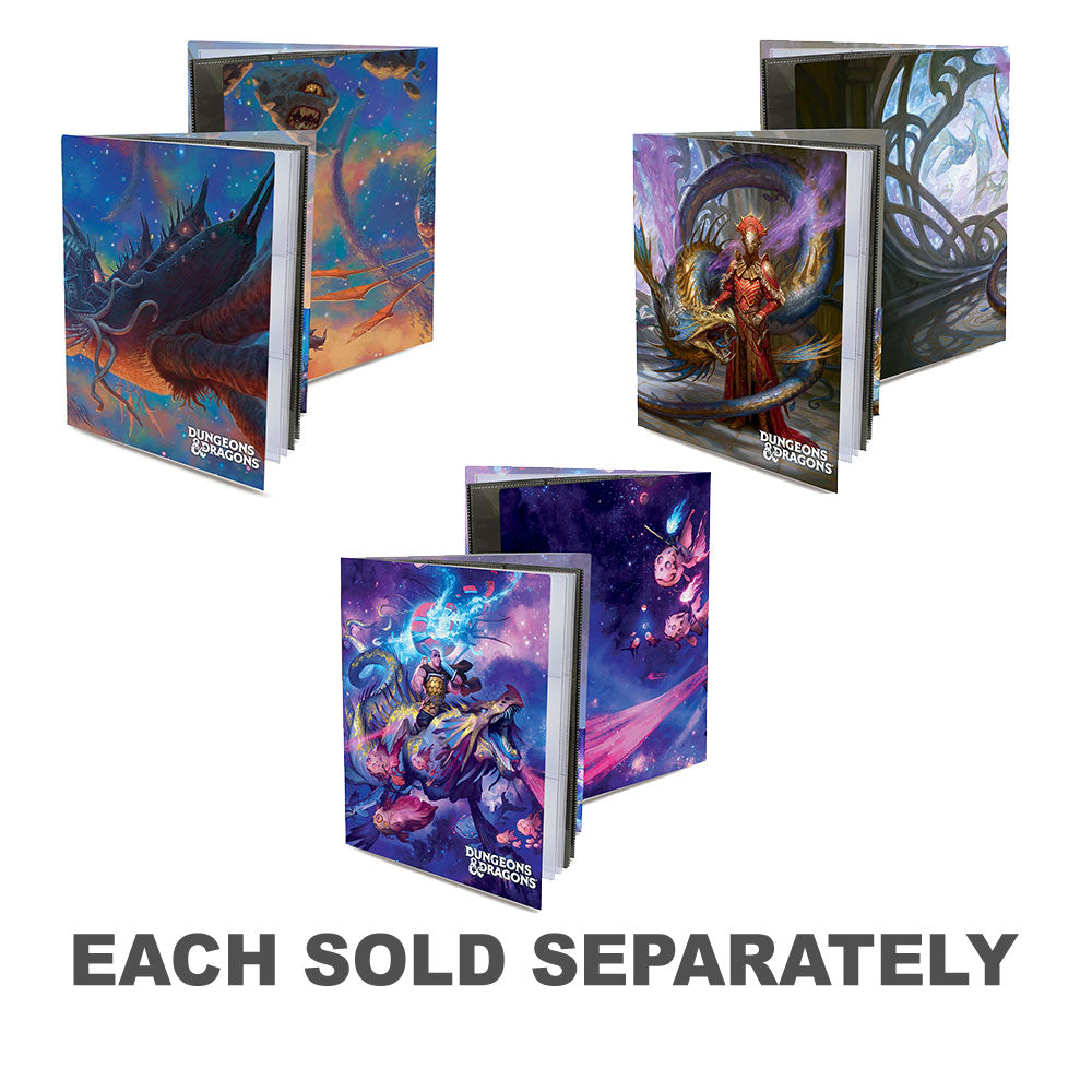 Character Folio with Stickers - Astral Adventurer's Guide - Dungeons & Dragons Cover Series Organize and store your notes, character sheets, and spell cards in a Character Folio! Each folio features a vibrant full-art cover and internal pockets, including 10 single-pocket pages for character sheets and notes, and two 9-pocket pages for standard size spell cards. Character Folios now include a sticker sheet to help keep your adventures organized!