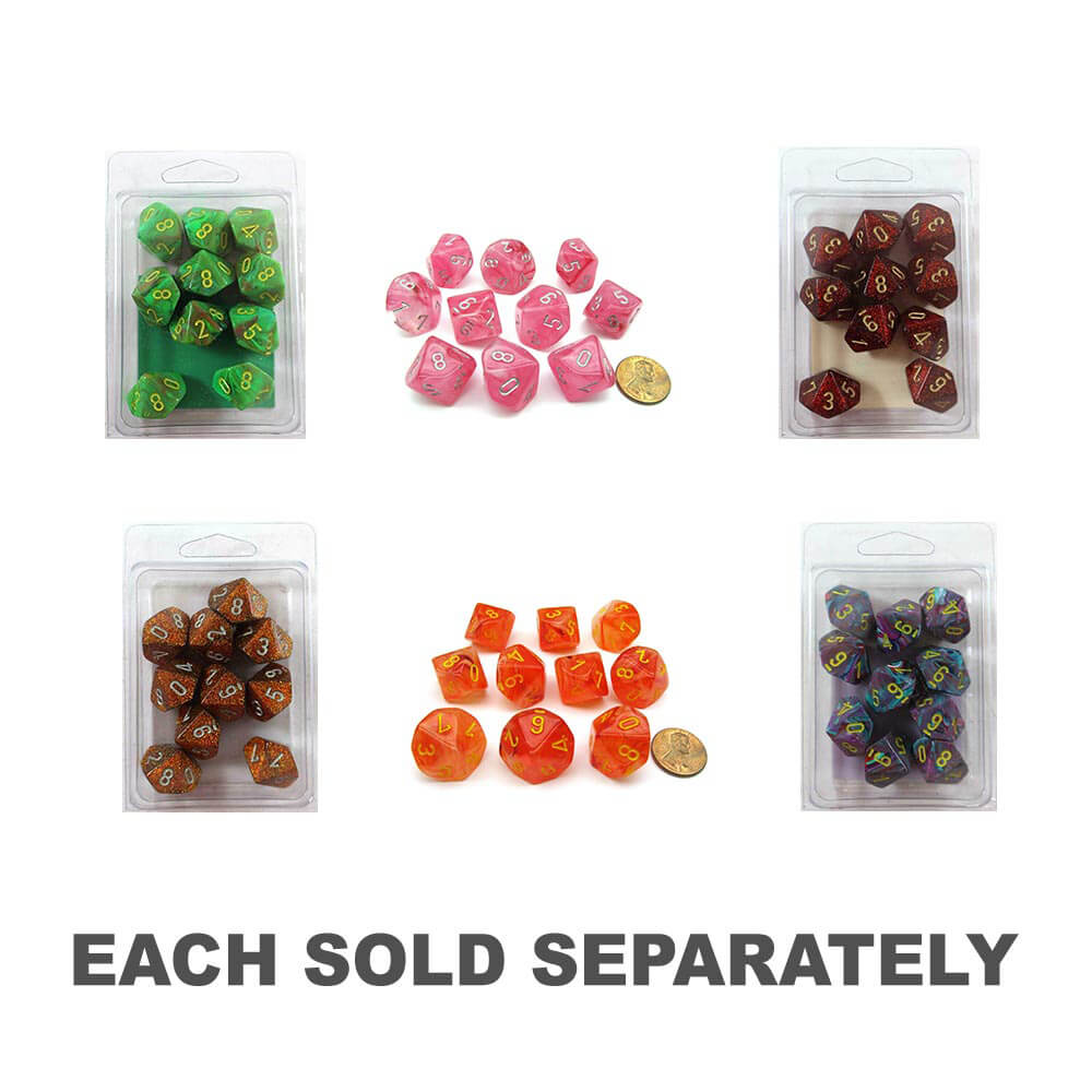 - Pack of 10 Chessex Vortex D10 Dice - Slime with Yellow Numbers