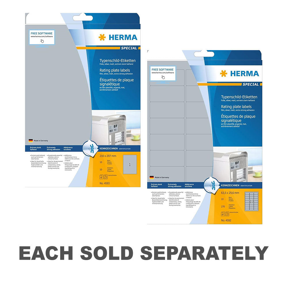 Elevate your labeling standards with Herma Rating Plate Labels, available in A4 size and a pack of 10 pieces in elegant silver! Are you in need of labels that offer both durability and sophistication? These rating plate labels are your answer. Whether you're labeling machinery, equipment, or electrical appliances, these labels provide a professional finish to your projects. Their metallic silver finish exudes a sense of quality and durability, while their adhesive ensures a secure attachment. Say goodbye to ordinary labels and hello to premium quality with Herma Rating Plate Labels, your essential tool for showcasing excellence!