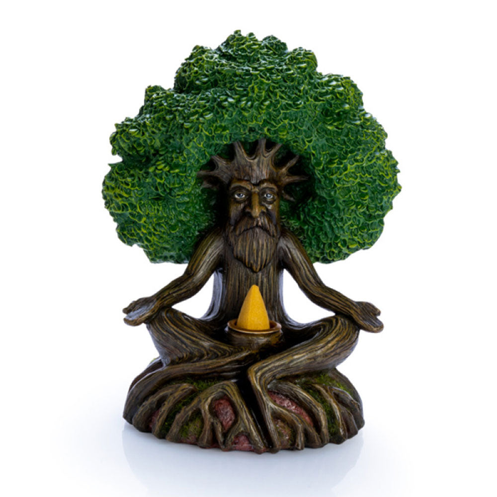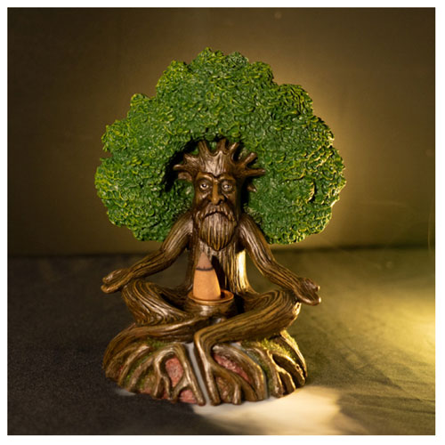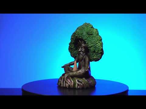 Magical backflow incense burner featuring a meditating ancient tree. Place a lit incense cone in the tree's lap and watch the smoke flow out through its roots. Suitable for incense cones.