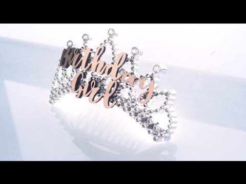 - Tiara plateada con insignia ""Birthday Girl"" en oro rosa.