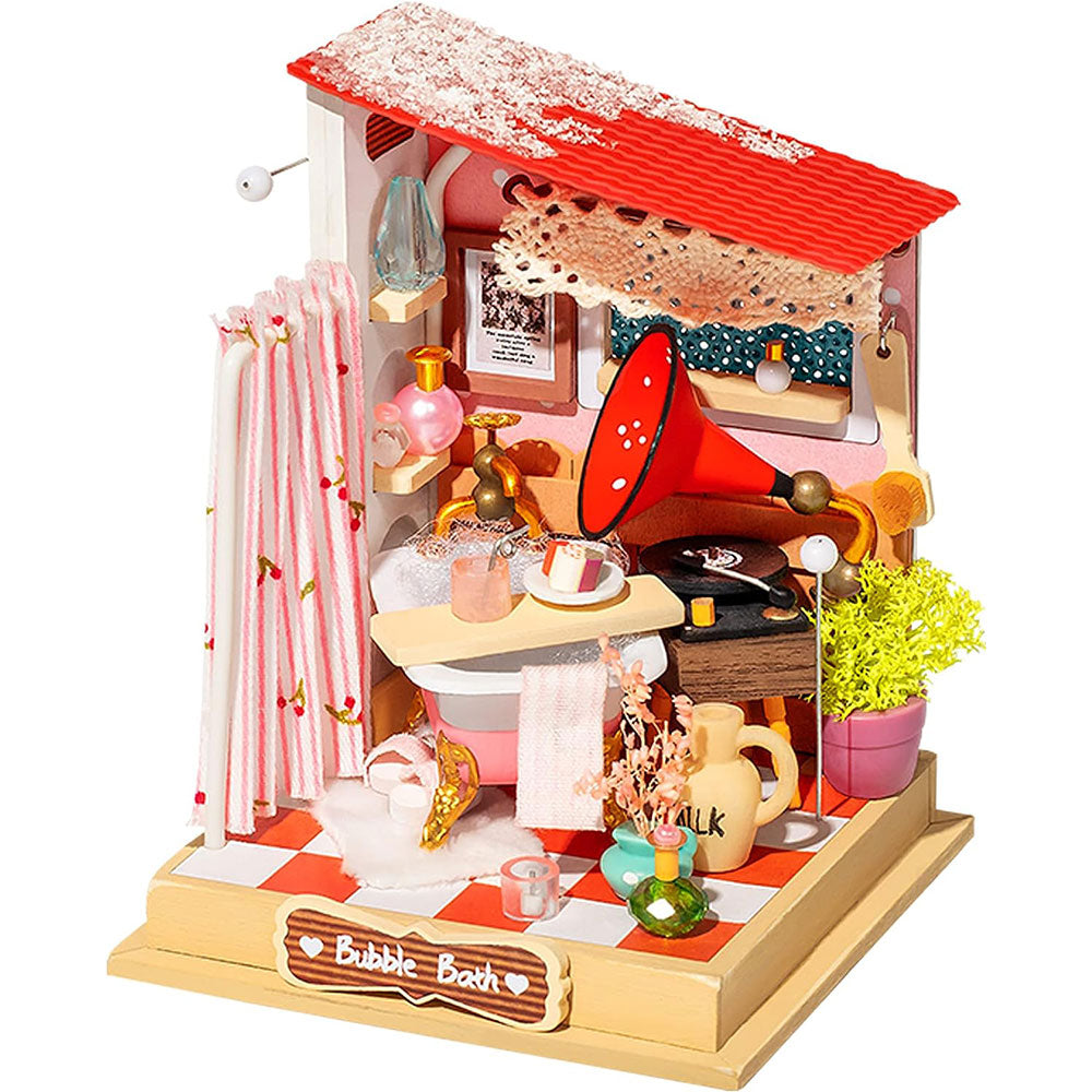 Disfrute de un momento de relajación con el kit de baño de baño de burbujas Diy Mini House. Ensamble la casa de muñecas y cree una atmósfera con forma de spa con accesorios de baño en miniatura. Es un proyecto creativo y calmante para los entusiastas del autocuidado.