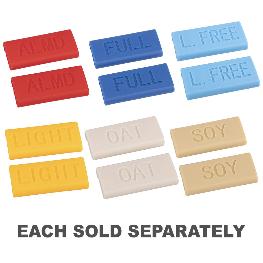 Las etiquetas codificadas por colores están disponibles en crema completa, luz, almendras, soja y avena.