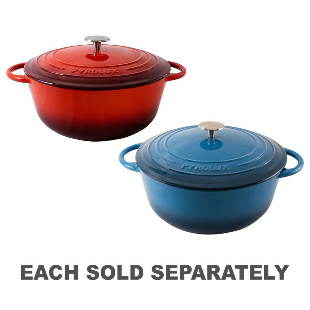 La cacerola Pyrolux Pyrochef de hierro fundido es una cazuela de diseño liviana, hasta un 40 por ciento más ligera que el hierro fundido tradicional. Se puede usar en cualquier fuente de calor, incluida la inducción. Con un recubrimiento esmaltado de 3 capa interna y externamente, esta sartén es fácil de cuidar y extremadamente duradera. Diámetro: 20 cm. Capacidad: 2 litros.