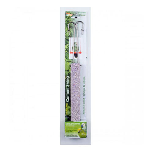 - Diseñado para especies de aves más pequeñas, este swing compacto de cemento ofrece una percha acogedora para descansar y jugar.