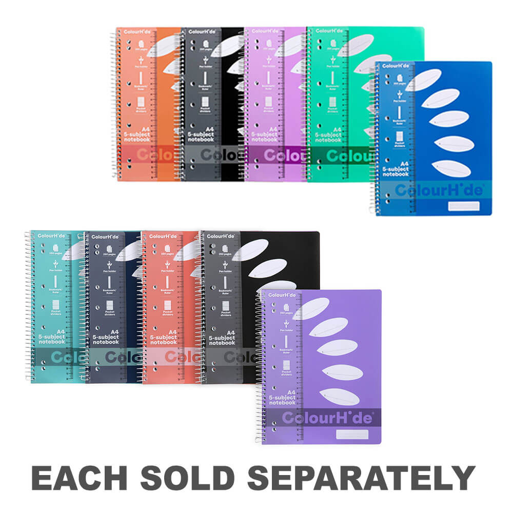 Das ColourHide-Notizbuch ist ein großartiges Werkzeug zum Notieren von Notizen und Informationen, sei es für die Schule, die Universität, die Arbeit oder zu Hause. Es verfügt über eine spiralförmige Seitenbindung und einen festen Einband aus Polypropylen für zusätzlichen Schutz sowie 250 Seiten mit viel Platz zum Schreiben. Es ist in 5 separate Themen unterteilt, damit Sie Ihre Notizen und Informationen organisieren können.