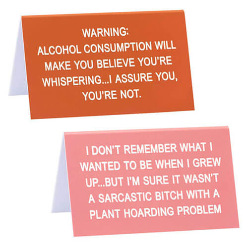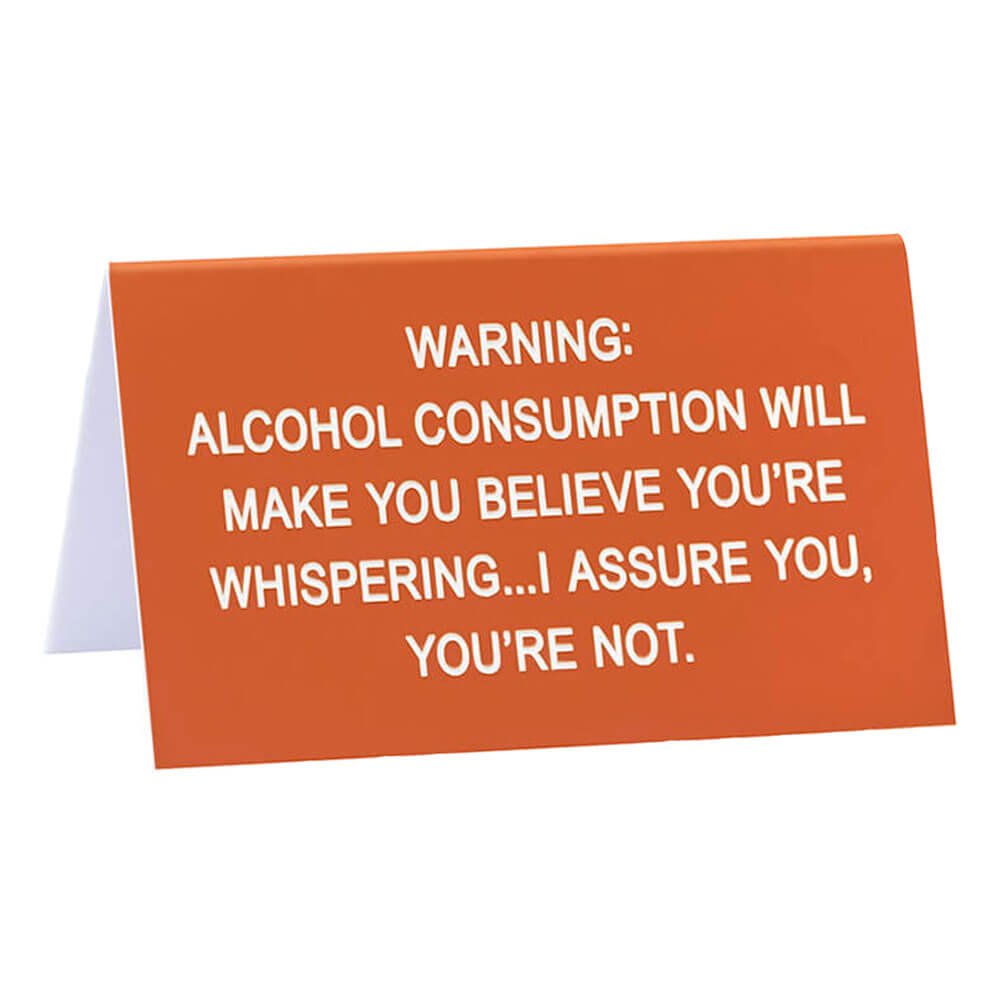 Brechen Sie die Monotonie der Arbeit auf und bringen Sie ein paar LOLs ins Büro mit diesem witzigen Schreibtischschild von SAY WHAT?. Die Bildunterschrift lautet: „Warnung: Alkoholkonsum lässt Sie glauben, dass Sie flüstern … Ich versichere Ihnen, das ist nicht der Fall.“