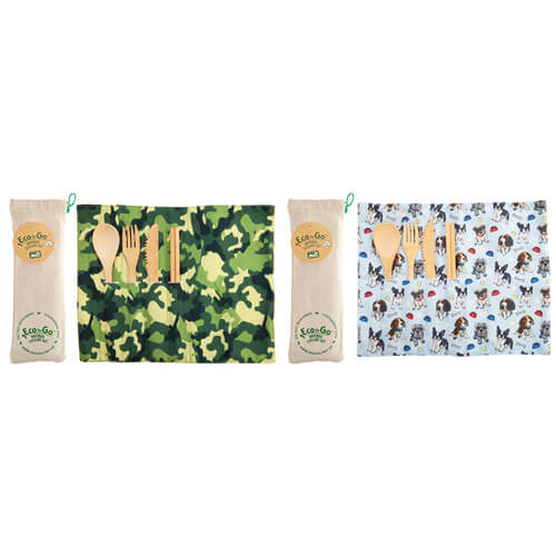 - Ensemble de couverts respectueux de l'environnement en bambou, avec une enveloppe de voyage qui sert de nattemat.