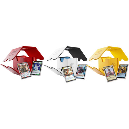 The brand-new Twin Suns Deck Pod, an officially licensed premium deck box, is specifically designed for the popular Star Wars: Unlimited Twin Suns format. UNIQUE FEATURE: The Twin Suns Deck Pod includes not 1 but 2 Slide Card Cases with additional UV protection for keeping the two required Leader cards safe. Due to the innovative placement of that cards, the stored deck can be easily identified without opening the box. Both Slide Card Cases can be detached and used during gameplay.