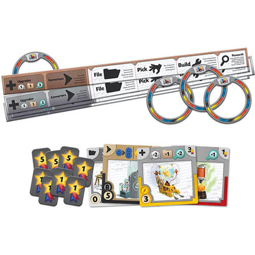 • Grande relecabilité - Les joueurs mélangent les decks Gizmos et n'utilisent qu'un certain nombre d'entre eux chaque jeu. À chaque jeu, de nouvelles options seront disponibles.