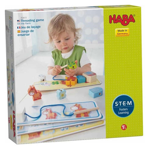 • Le contenu comprend: 2 fils avec stable, 1 vache, 1 mollet, 1 cheval, 1 poulain, 1 trèfle, 1 fleur, 1 baratte de lait, 1 fer à cheval, 4 modèles et 1 petit sac tactile.