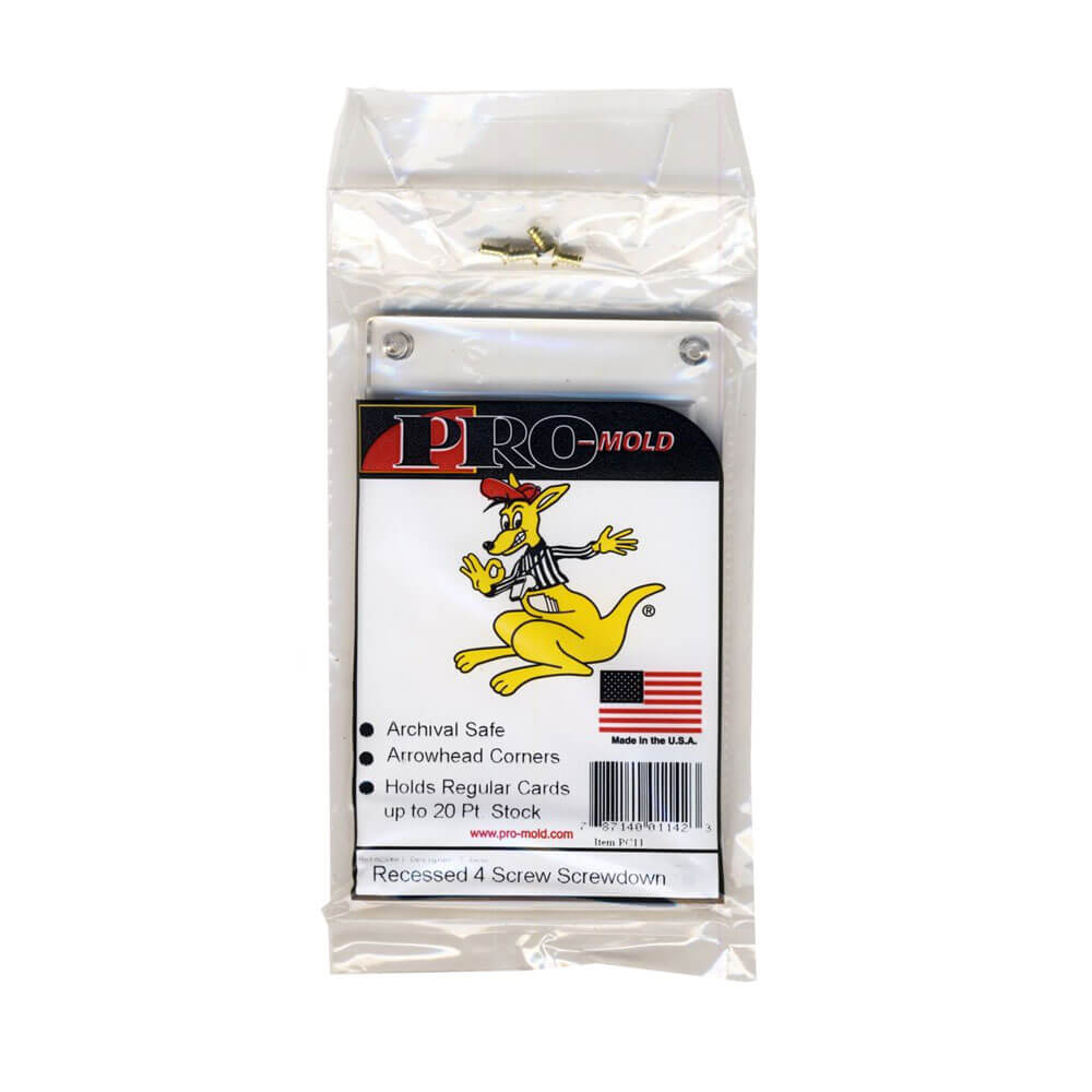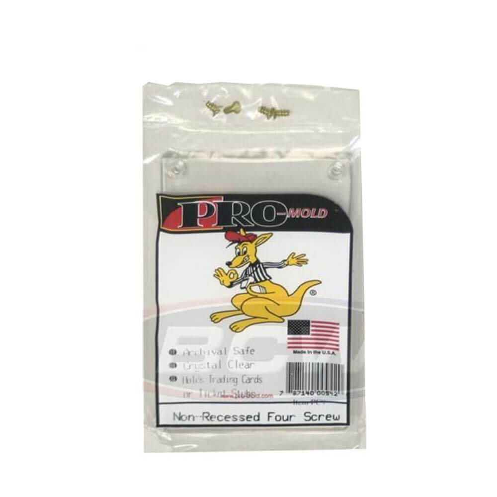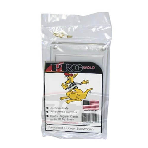 Dimensioni esterne: 3 x 4 7/8 x 1/4 Dimensioni interne: 2 1/2 x 3 1/2 x 30pts Il supporto a 4 viti Pro-Mold è progettato per visualizzare in modo attraente una scheda. A differenza di altri 4 viti a vite, questa ha un'area incassata sul coperchio sopra la scheda che dà alla carta un aspetto tridimensionale. Questo supporto ha fori per viti interblocco che lo rendono impilabile.