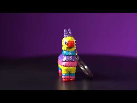 - Presenta un lama colorato con strisce di stile marginale su un tradizionale anello di portachiavi
