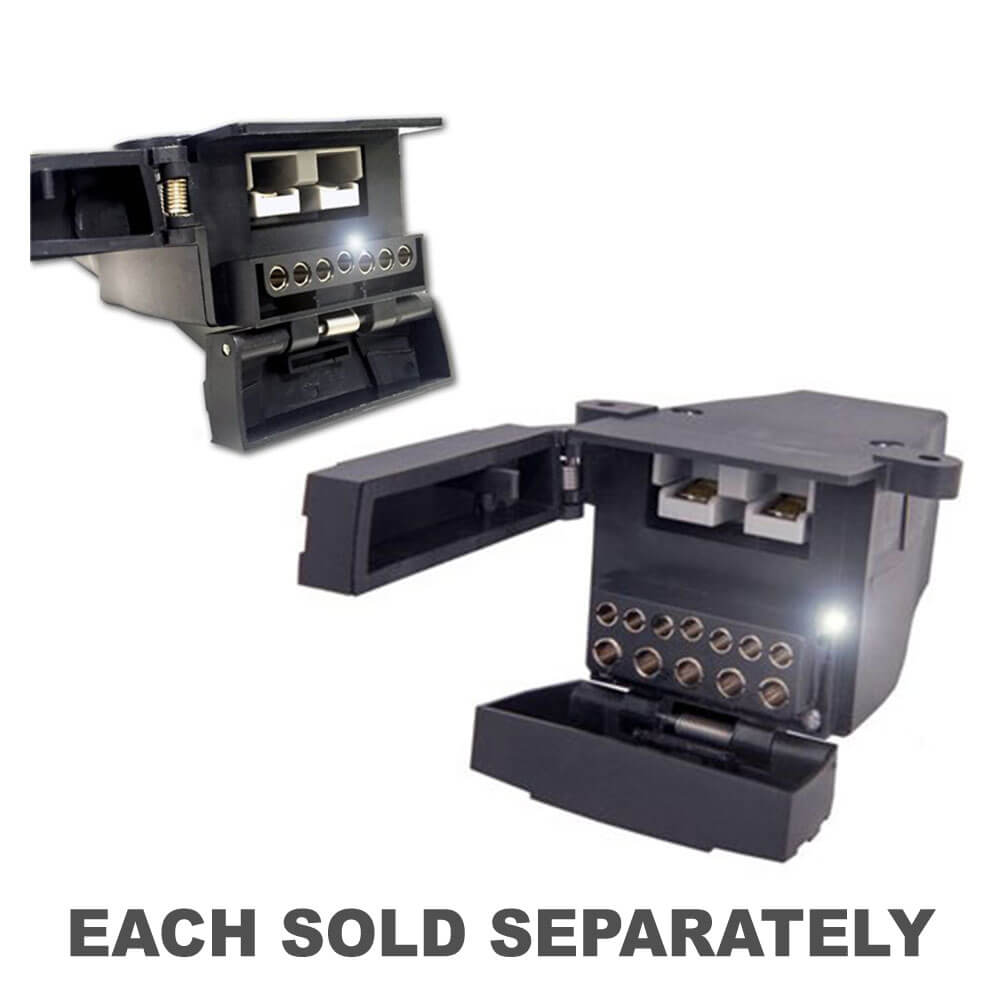 - Il connettore piatto a 7 pin a doppio rimorchio Ark non presenta solo una connessione in stile Anderson da 50amp, ma ha anche un lite incorporato.