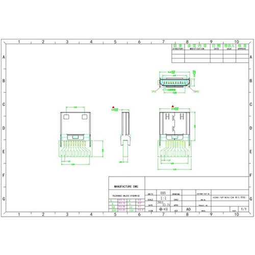 PCBマウント用の高品質の金メッキミニHDMIプラグ。