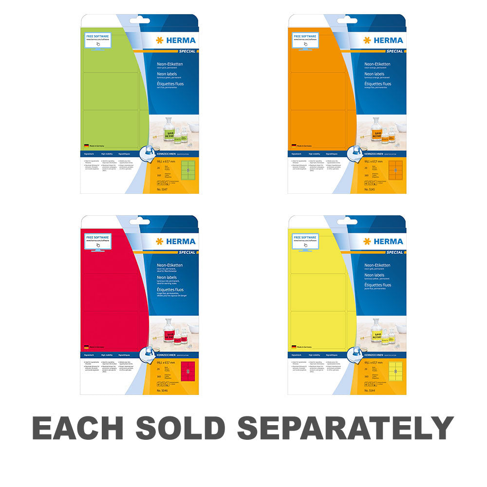 ヘルマラミネスネオンラベルでラベル付けタスクを照らしましょう!このパックには、鮮やかなネオン色の20個のA4サイズのラベルが含まれており、それぞれ99.1x67.7mmを測定し、高い視認性と衝撃を提供します。明るい仕上げで、これらのラベルは低照度の条件や混雑した環境で際立っており、注目を集める看板、イベントプロモーション、または創造的なプロジェクトに最適です。ビジネスプレゼンテーション、パーティーの装飾、芸術品や工芸品など、これらの明るいネオンラベルは、すべてのラベル付けのニーズに汎用性と興奮を提供します。 Herma Luminous Neon Labelsで明るく輝く準備をしてください!