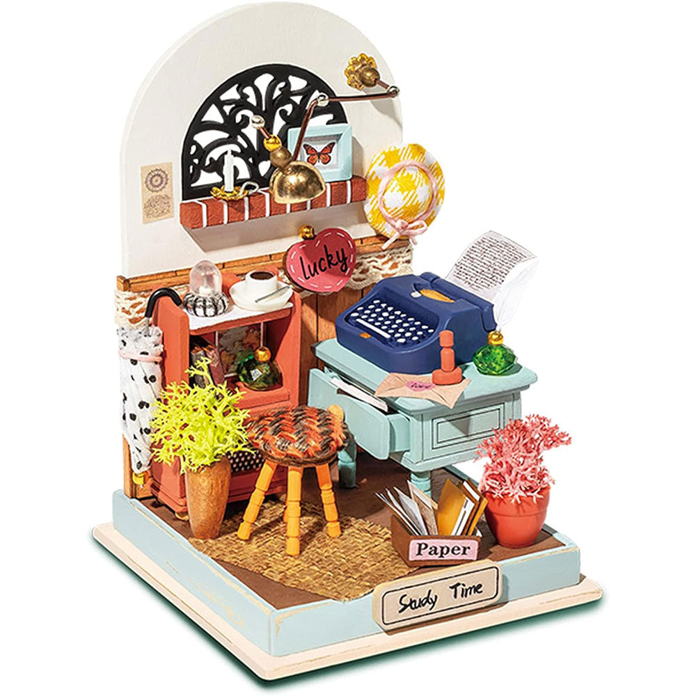DIY Mini House Record Mood Studyキットで学界の世界に飛び込みます。本や学術的な詳細で満たされたミニチュアの学習室を作りましょう。学生、本の虫、コレクターにとって理想的なプロジェクトです。