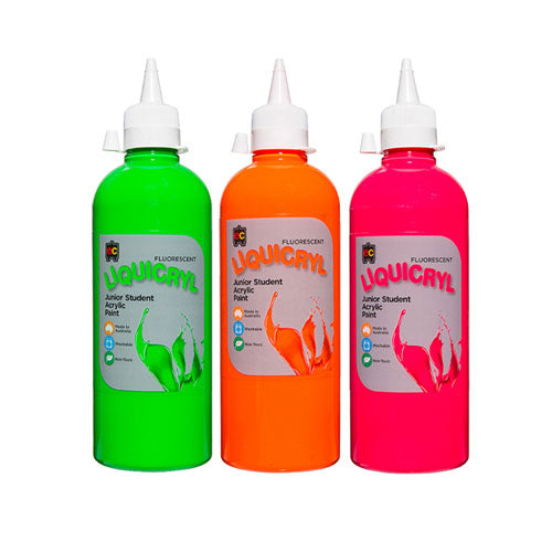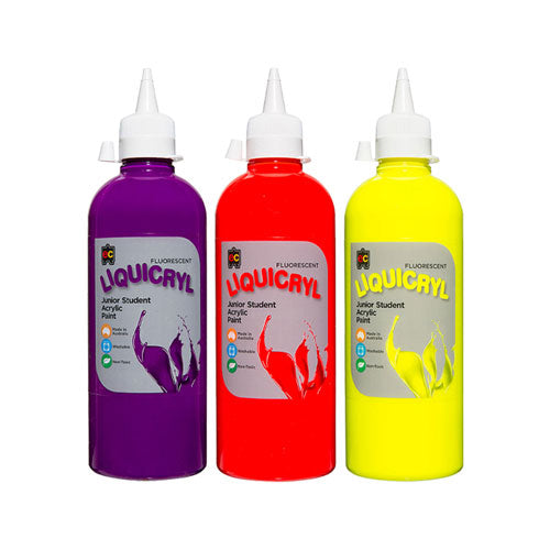 The paint comes in a 500ml, environmentally friendly PET bottle, reflecting our commitment to sustainable practices. With Fluorescent Liquicryl, every art project becomes an enjoyable, fun and safe creative experience.
