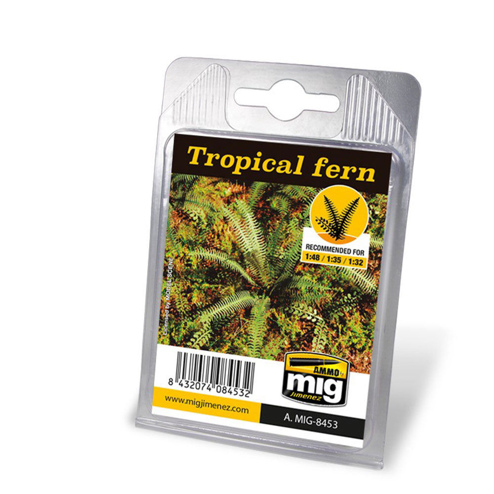 超現実的で高い詳細なレーザーカットトロピカルシダ。これらのシダは、あなたのジオラマ、車両、または人物にリアリズムの最後のタッチを追加するのに最適です。それらのサイズにより、1:48、1:35、または1:32のスケールに最適になります。