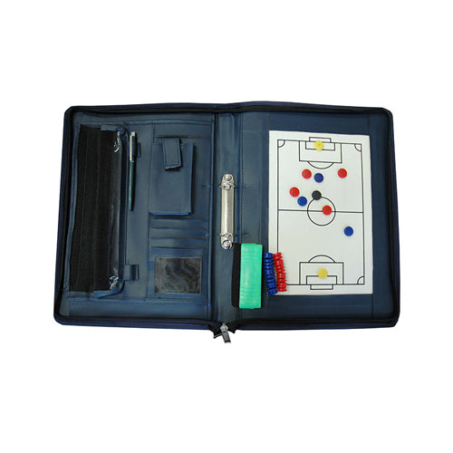 Magnetic board on one side of folder complete with pitch markings and player magnetic counters