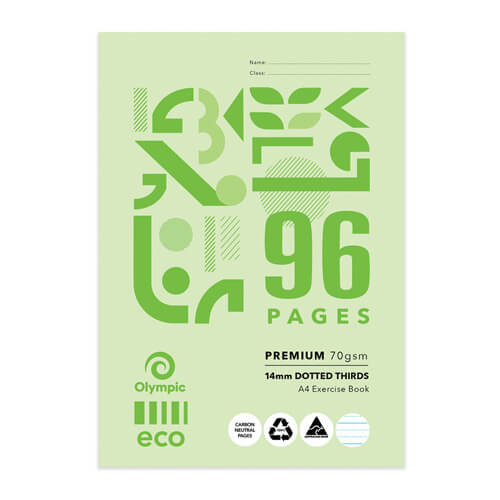 Olympische Eco is het enige bereik van 100% gerecyclede trainingsboeken die beschikbaar zijn met CO2 -neutrale pagina's gemaakt van 100% Australisch gerecycled afvalpapier.