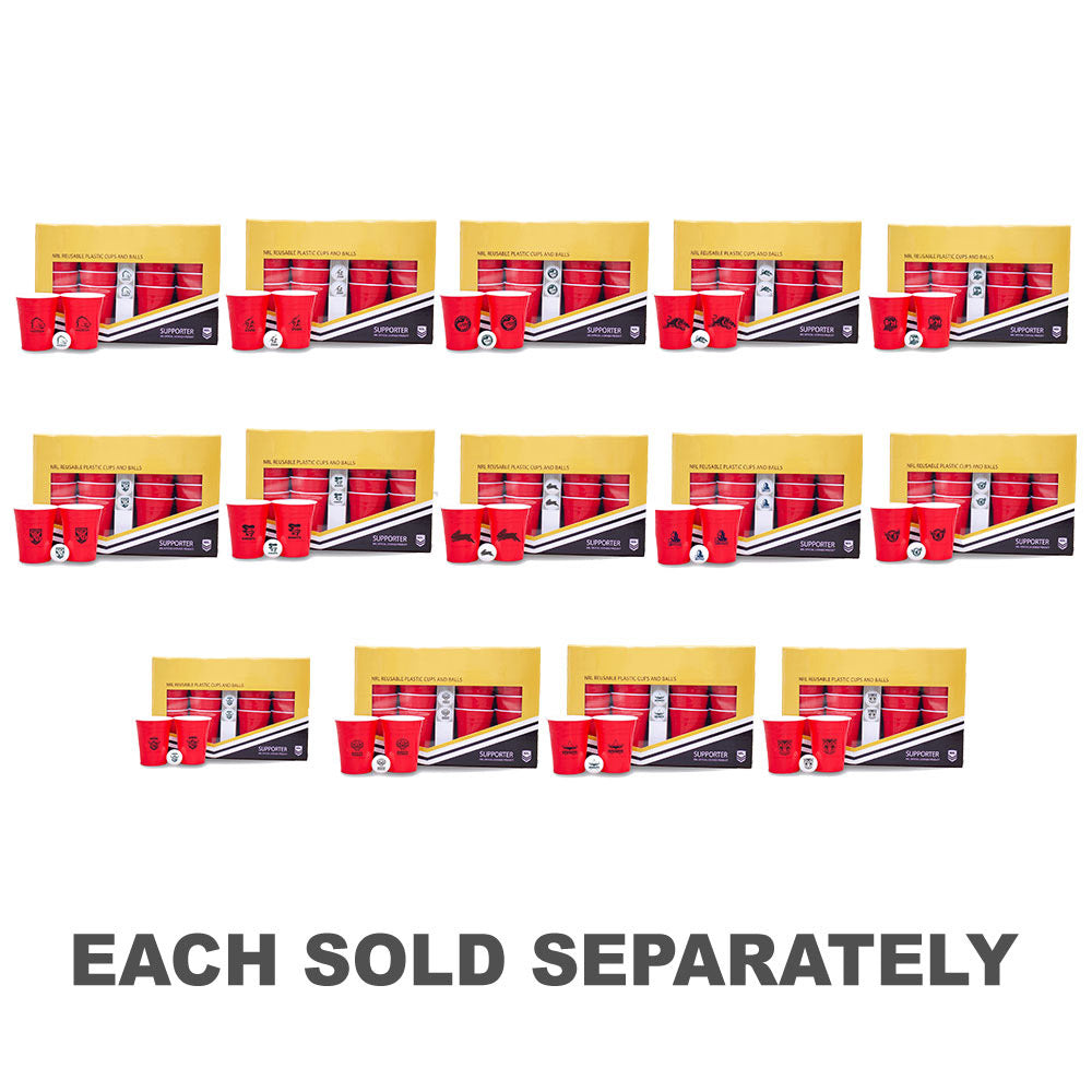 Introducing our Reusable Beer Pong Cups and Balls set, featuring your favorite NRL team's logo on each cup and ball. With 20 cups and 3 balls included, this set ensures stability and style for your beer pong games.