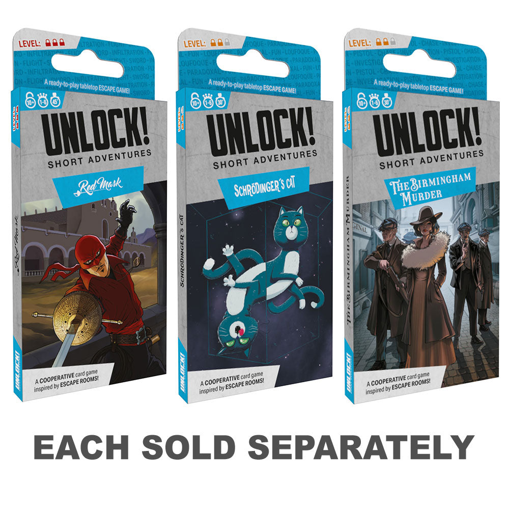 Unlock! adventures in a new compact format! The Unlock! - Short Adventures are 6 original adventures with varied and surprising universes that last between 30 and 45 minutes, depending on the level of difficulty.