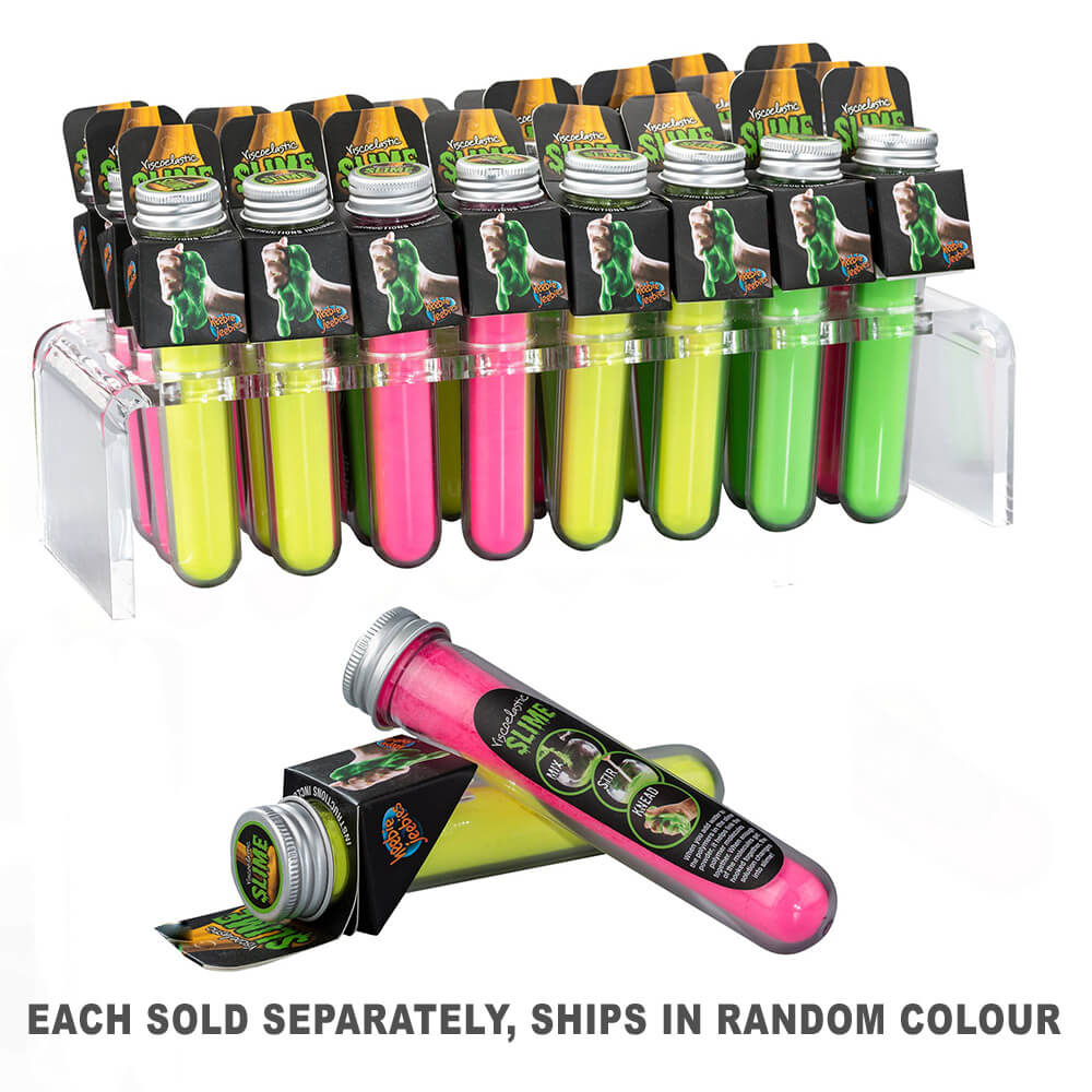 Dit slijm wordt geleverd in een geweldige testbuis met instructies en informatie over hoe slijm werkt. Lege inhoud in een kom en voeg water toe voor direct plezier. Het kneden geeft ook geweldige praktijk voor het maken van brood. Het komt in 4 kleuren!