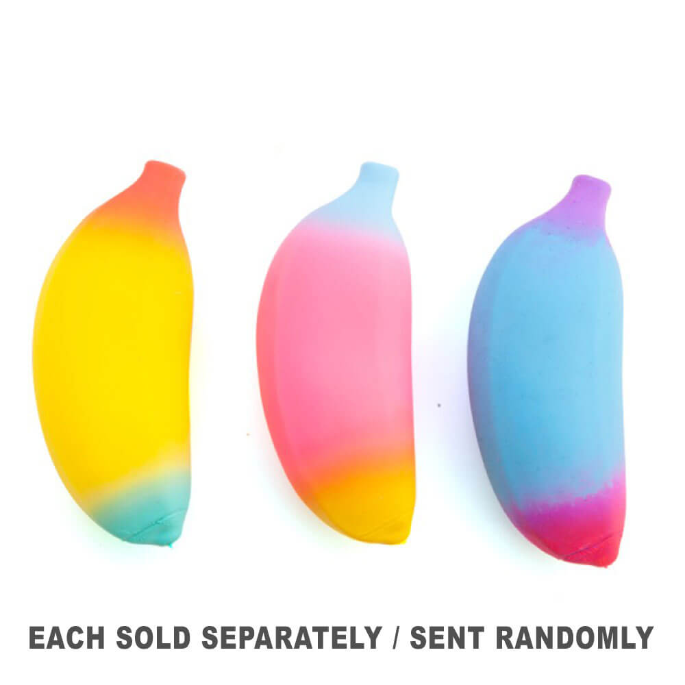 • Zacht en stretchy kleurrijk bananenspeelgoed dat op zintuigen puilt!