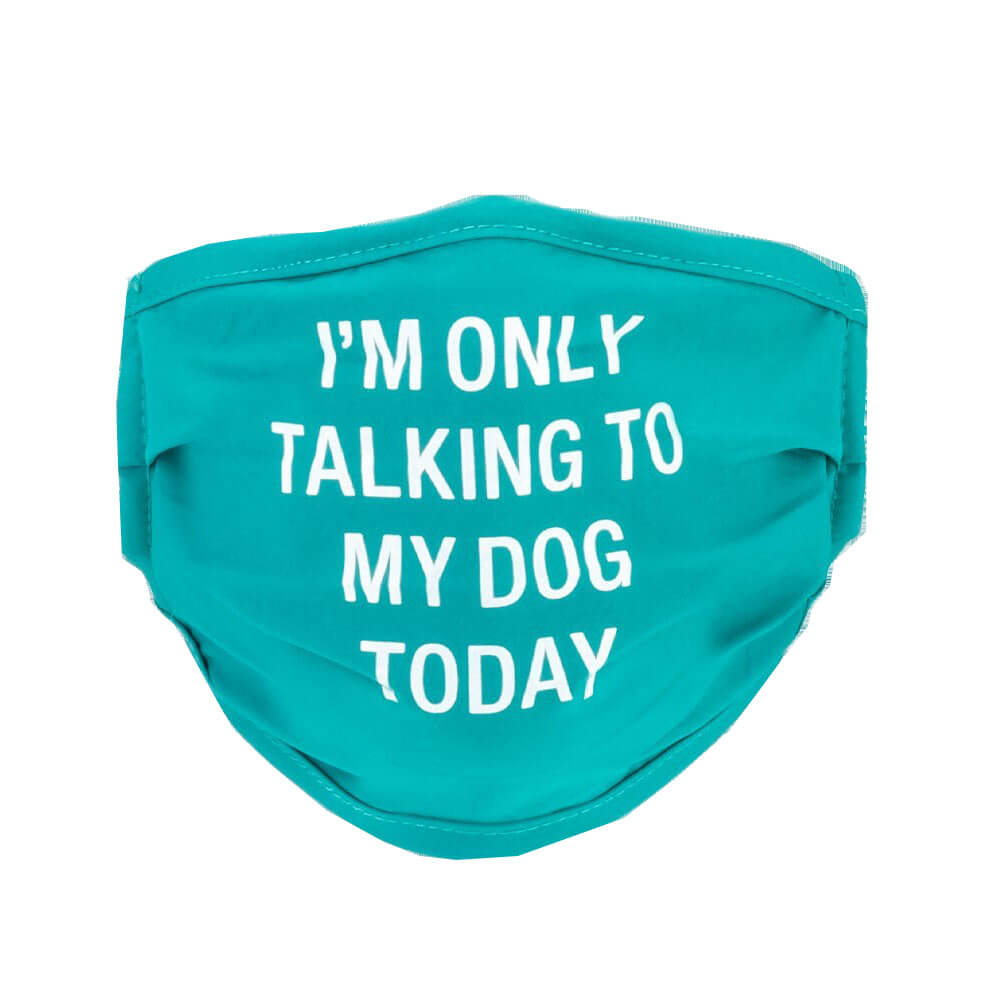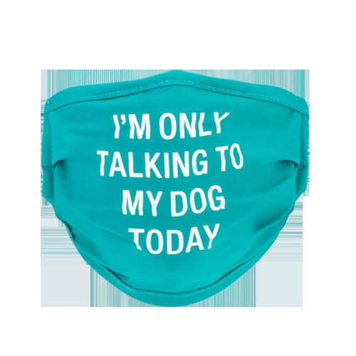 - Masker leest: "Ik praat vandaag alleen met mijn hond"