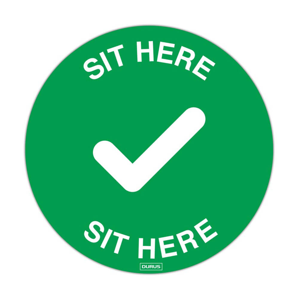 Dette durus gulvdekal er ideell for å sikre at kunder og besøkende følger sosiale distanseringsregler mens de er på forretningsstedet ditt. Dette PVC-gulvdekalen er anti-slip og holdbart, i tillegg til å være lett å påføre. Det står 'Sitt her' og kan brukes på de fleste gulvtyper inkludert polerte gulvplater, betong, kort haugteppe og fliser.