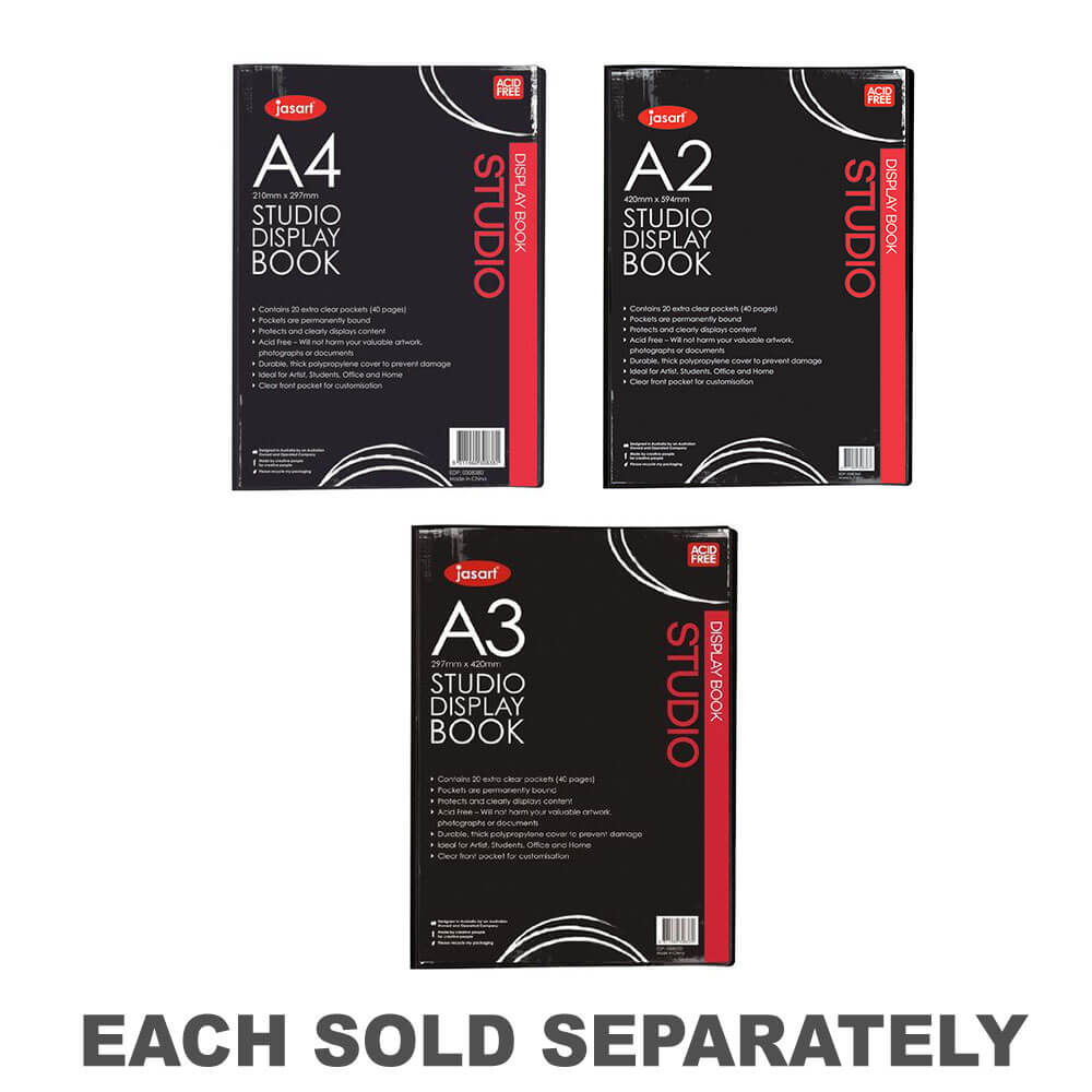 Jasart Studio Display Books beskytter og viser tydelig innhold. Bruk frontdeksellommen til å vise etiketter, tittelsider og bilder for å tilpasse skjermboka. Funksjoner: Sider er permanent bundet for holdbarhet.
