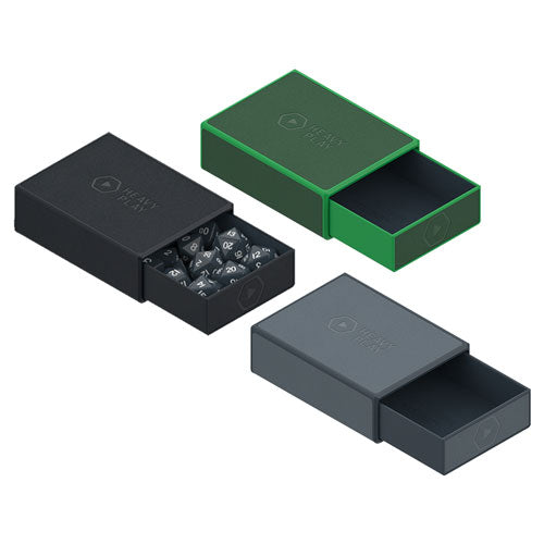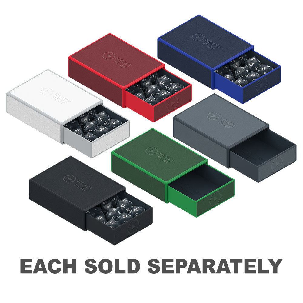 Ostateczna pudełko na kości. Pasuje do 4x D20, pełny zestaw kostek 7x RPG i kilka dodatkowych D6 lub tokenów. Taca magnetyczna wysuwa się i wyskakuje na górze, aby uzyskać łatwy dostęp do kości podczas rozgrywki. Trwałe wegańskie skóry na zewnątrz. Miękka podszewka mikrofibry w celu tłumienia grzechotania.
