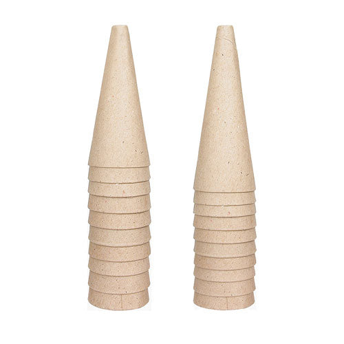 Cardboard Cone Small 7.5cm 10's is a versatile collection of sturdy cardboard cones that can serve as a foundation for various creative projects. These cones are perfect for use with materials like clay, Sculpt-It, papier mache, or other crafting mediums. They also work well on their own for craft projects, making excellent bases for trees, figures, or other 3D structures.