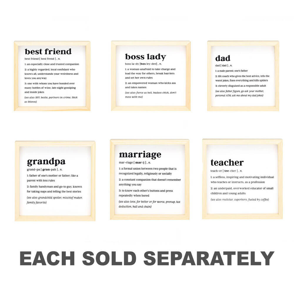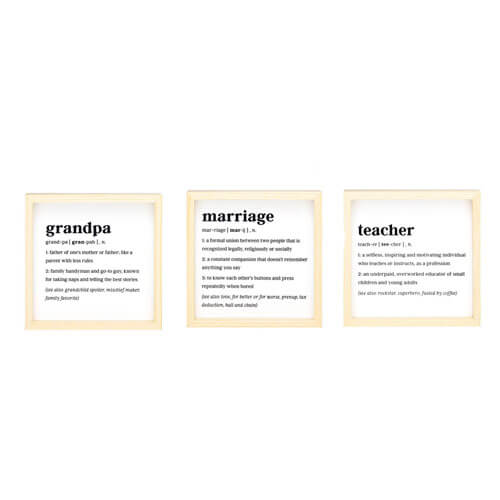 Ta zdefiniowana sztuka mini w ramce ma minimalistyczny czarno -biały definicja z oryginalną definicją małżeństwa. Idealny prezent dla twojego znaczącego drugiego z okazji rocznicy lub tylko dlatego!