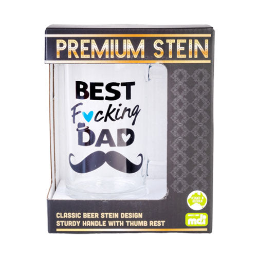 Zeigen Sie Ihrem Vater ein wenig Wertschätzung mit diesem frechen Bierkrug aus Glas. Auf dem schwarzen Aufkleber steht „Best F*cking Dad“ über einer Schnurrbart-Silhouette. Fasst ca. 450 ml von Papas Lieblingsgetränk.