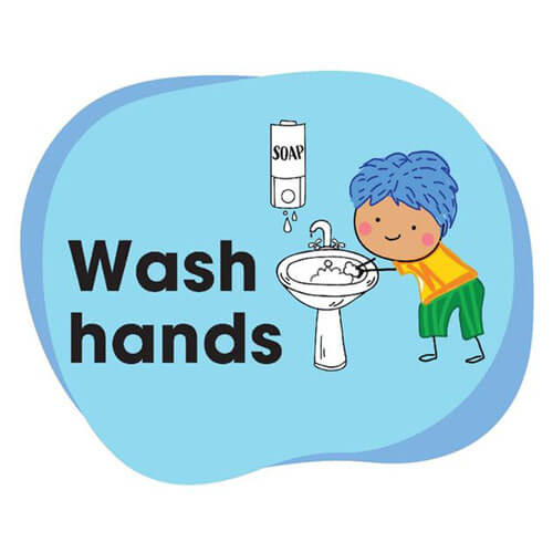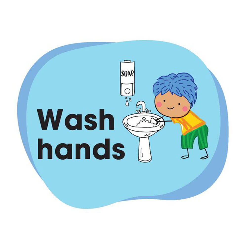 - Das Bodenschild soll Schüler und Gäste daran erinnern, sich die Hände zu waschen.