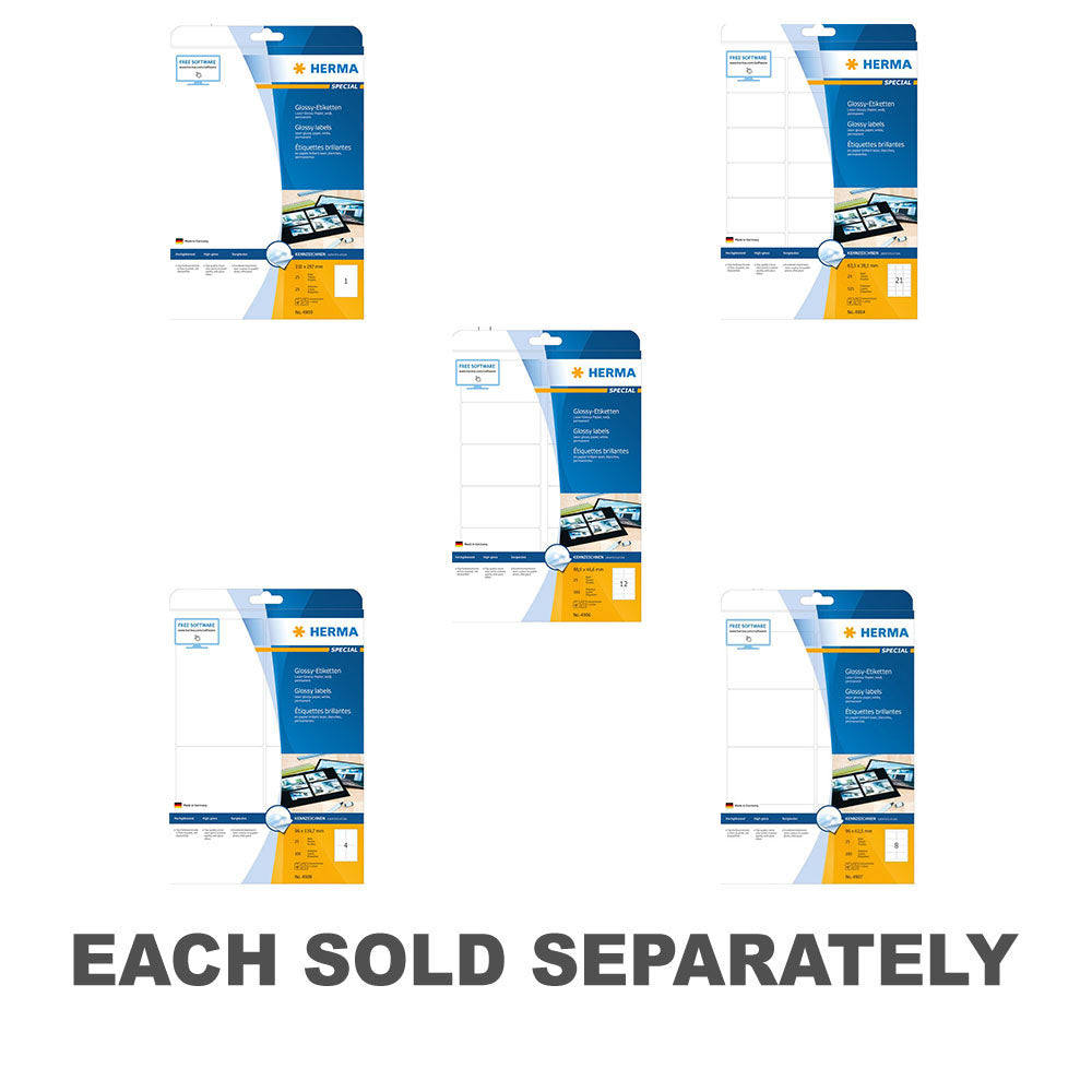 Elevate your printing projects with Herma Laser Glossy Labels! This pack includes 25 A4-sized labels in white, featuring a glossy finish for vibrant and professional-quality printing. Designed for laser printers, these labels ensure sharp and crisp graphics, making them perfect for product labeling, packaging, or promotional materials. Whether for business presentations, creative projects, or personal use, these laser glossy labels offer versatility and sophistication for all your labeling needs. Get ready to make a glossy statement with Herma Laser Glossy Labels!