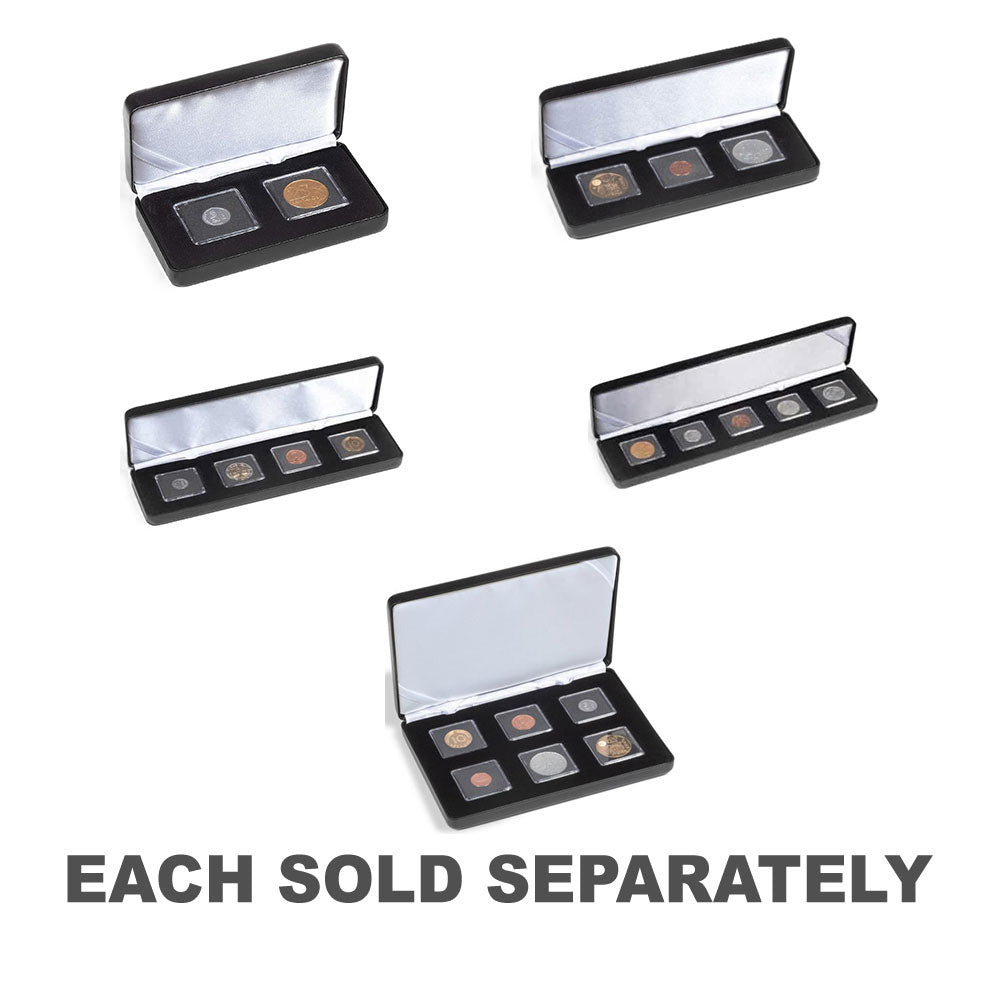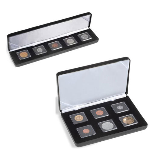 This sleek black Quadrum Coin Capsule Etui is a must-have for any serious coin collector. With its sophisticated design and practical features, it offers the perfect solution for storing and showcasing your valuable coins. Each coin is safely nestled within its own protective capsule, safeguarding it from damage and preserving its pristine condition. Say goodbye to cluttered drawers and flimsy containers - with this elegant etui, you can display your collection with pride and peace of mind. Elevate your collecting experience with this stylish and functional accessory!