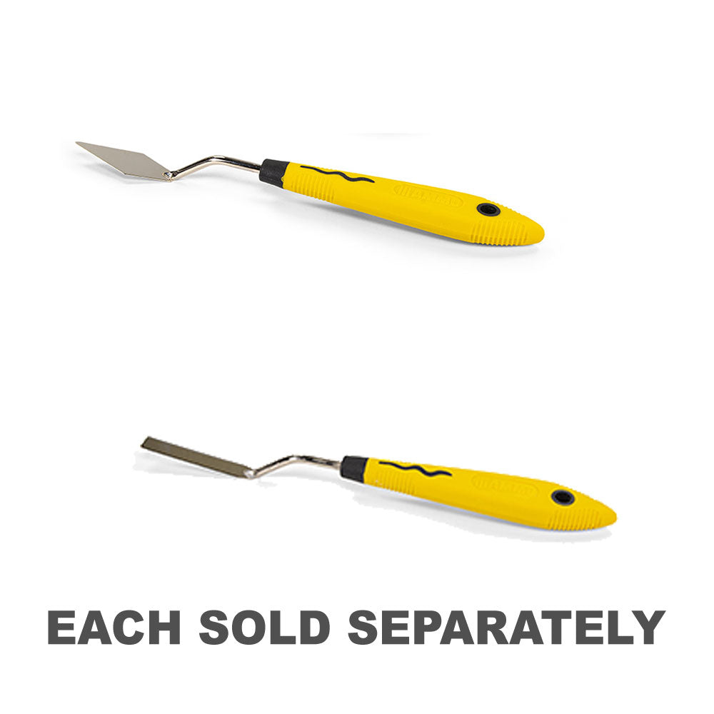 Hochwertige Palettenmesser aus Edelstahl mit flexiblen Klingen und ergonomischem Gummigriff für einfachen Halt und Komfort. Ideal für den Vignetten- und Dioramabau, das Auftragen und Verteilen von Texturen, das Streuen und Verteilen von Pigmenten sowie für Bildhauer- und Schnitzarbeiten.