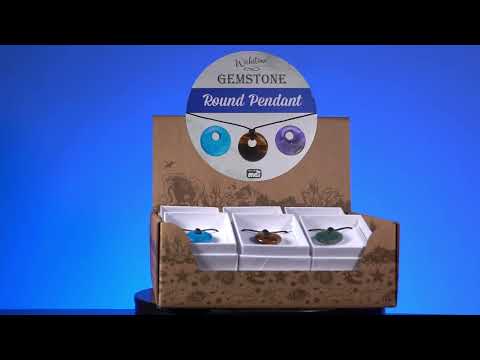 Hochwertige Halskette aus Lederband mit einem runden Edelsteinanhänger. Der Artikel kann zwischen 6 Edelsteinen variieren: Fluorit, Hämatit, Howlith, Amethyst, Rosenquarz, goldenes Tigerauge.